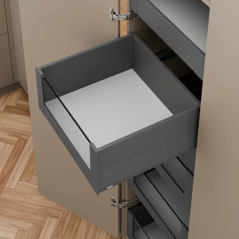Mocowanie szuflady wewnętrznej BLUM MERIVOBOX BOXCAP + szkło antracyt - ZI4.4ES1