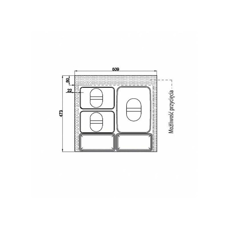 - dopasowanie do szafek o głębokości 500 mm (450 mm po przycięciu)