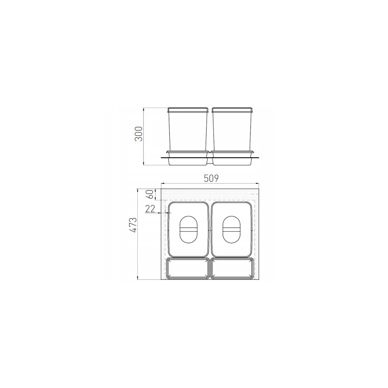 Pojemnik na śmieci multino 600 mm 1x15l 2x7l antracyt